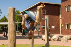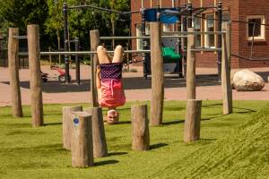 * Indien sprake er is van een gedwongen beweging, is een harde ondergrond uitgesloten en is valdemping voor ten minste 1,0 m valhoogte noodzakelijk. Veerelementen mogen niet op verharding.