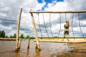 * Indien sprake er is van een gedwongen beweging, is een harde ondergrond uitgesloten en is valdemping voor ten minste 1,0 m valhoogte noodzakelijk. Veerelementen mogen niet op verharding.