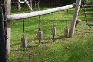 * Indien sprake er is van een gedwongen beweging, is een harde ondergrond uitgesloten en is valdemping voor ten minste 1,0 m valhoogte noodzakelijk. Veerelementen mogen niet op verharding.