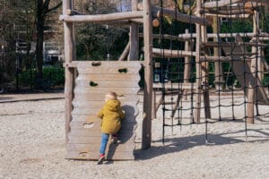 * Indien sprake er is van een gedwongen beweging, is een harde ondergrond uitgesloten en is valdemping voor ten minste 1,0 m valhoogte noodzakelijk. Veerelementen mogen niet op verharding.