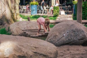 * Indien sprake er is van een gedwongen beweging, is een harde ondergrond uitgesloten en is valdemping voor ten minste 1,0 m valhoogte noodzakelijk. Veerelementen mogen niet op verharding.
