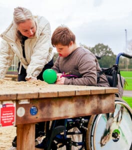 * Indien sprake er is van een gedwongen beweging, is een harde ondergrond uitgesloten en is valdemping voor ten minste 1,0 m valhoogte noodzakelijk. Veerelementen mogen niet op verharding.