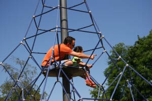 * Indien sprake er is van een gedwongen beweging, is een harde ondergrond uitgesloten en is valdemping voor ten minste 1,0 m valhoogte noodzakelijk. Veerelementen mogen niet op verharding.