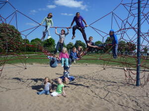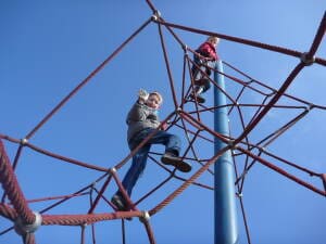 * Indien sprake er is van een gedwongen beweging, is een harde ondergrond uitgesloten en is valdemping voor ten minste 1,0 m valhoogte noodzakelijk. Veerelementen mogen niet op verharding.