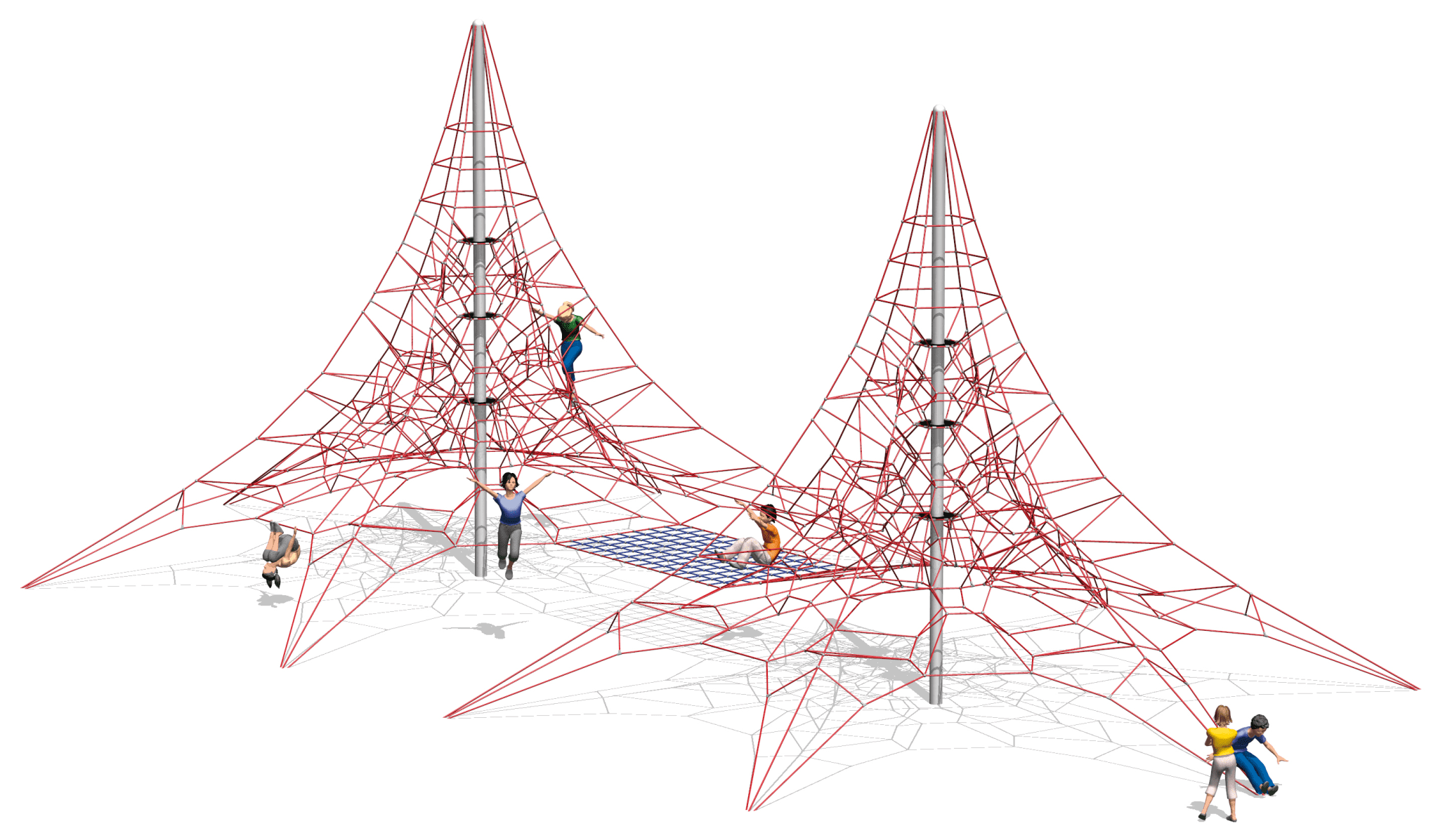 * Indien sprake er is van een gedwongen beweging, is een harde ondergrond uitgesloten en is valdemping voor ten minste 1,0 m valhoogte noodzakelijk. Veerelementen mogen niet op verharding.