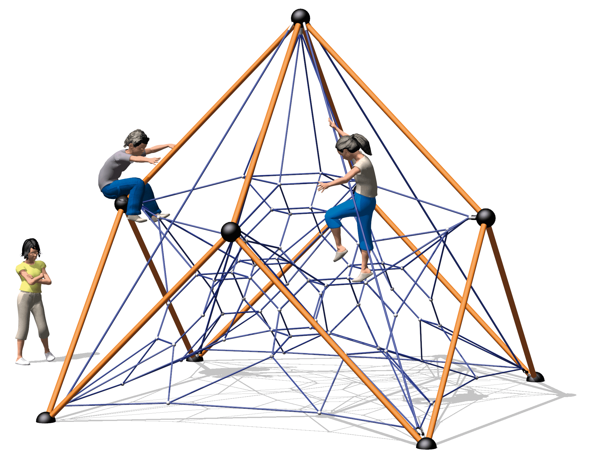 * Indien sprake er is van een gedwongen beweging, is een harde ondergrond uitgesloten en is valdemping voor ten minste 1,0 m valhoogte noodzakelijk. Veerelementen mogen niet op verharding.