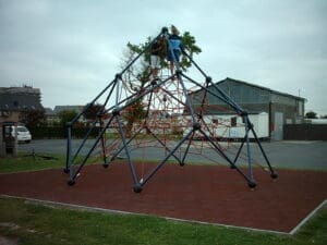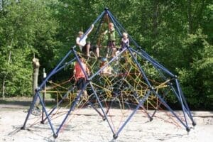 * Indien sprake er is van een gedwongen beweging, is een harde ondergrond uitgesloten en is valdemping voor ten minste 1,0 m valhoogte noodzakelijk. Veerelementen mogen niet op verharding.