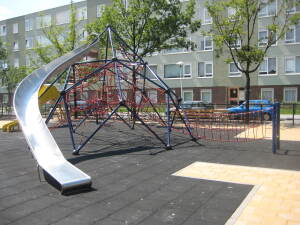 * Indien sprake er is van een gedwongen beweging, is een harde ondergrond uitgesloten en is valdemping voor ten minste 1,0 m valhoogte noodzakelijk. Veerelementen mogen niet op verharding.