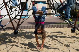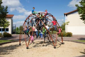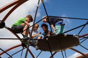 * Indien sprake er is van een gedwongen beweging, is een harde ondergrond uitgesloten en is valdemping voor ten minste 1,0 m valhoogte noodzakelijk. Veerelementen mogen niet op verharding.