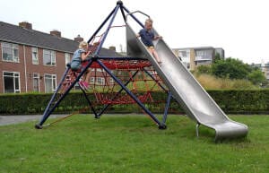 * Indien sprake er is van een gedwongen beweging, is een harde ondergrond uitgesloten en is valdemping voor ten minste 1,0 m valhoogte noodzakelijk. Veerelementen mogen niet op verharding.