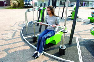 * Indien sprake er is van een gedwongen beweging, is een harde ondergrond uitgesloten en is valdemping voor ten minste 1,0 m valhoogte noodzakelijk. Veerelementen mogen niet op verharding.