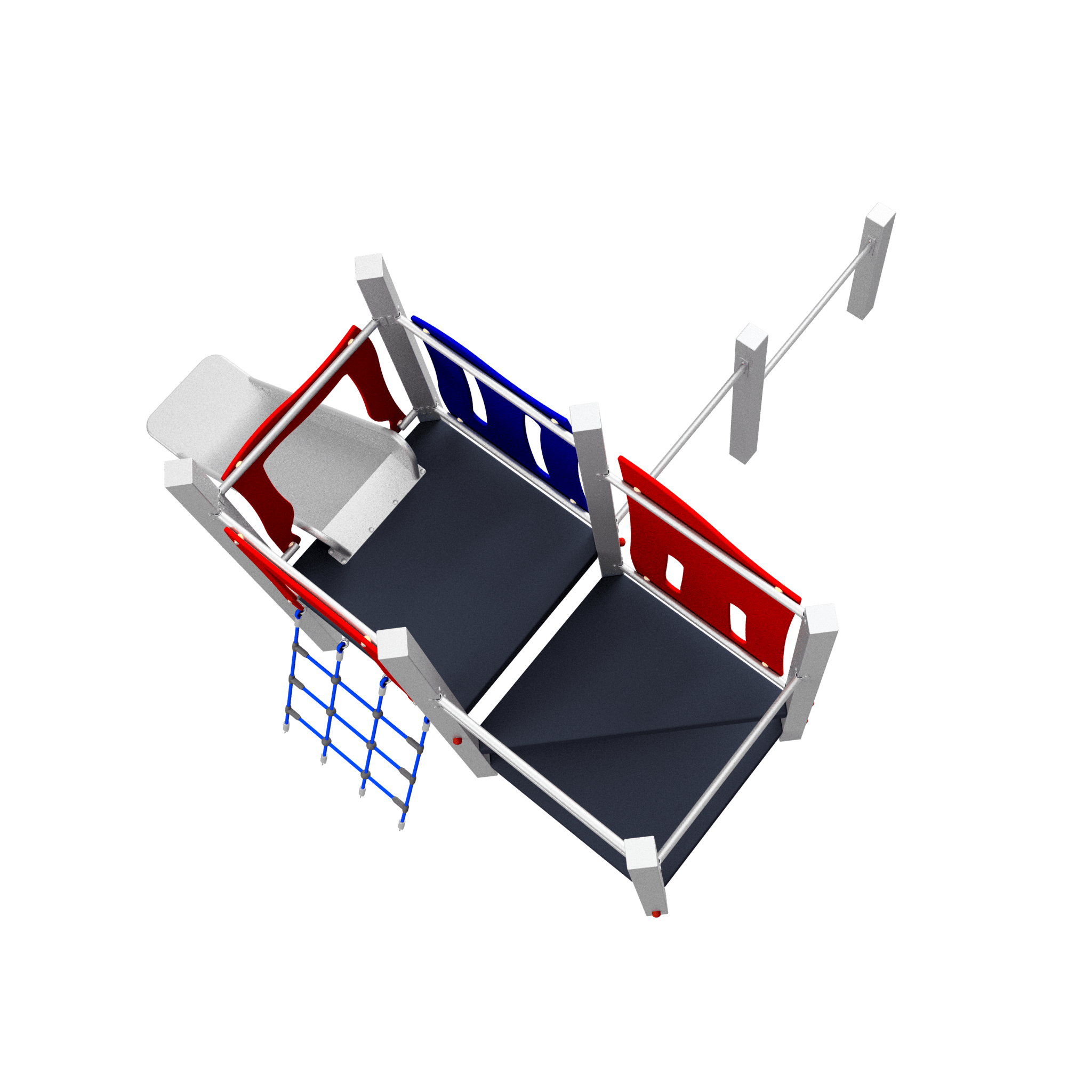 * Indien sprake er is van een gedwongen beweging, is een harde ondergrond uitgesloten en is valdemping voor ten minste 1,0 m valhoogte noodzakelijk. Veerelementen mogen niet op verharding.