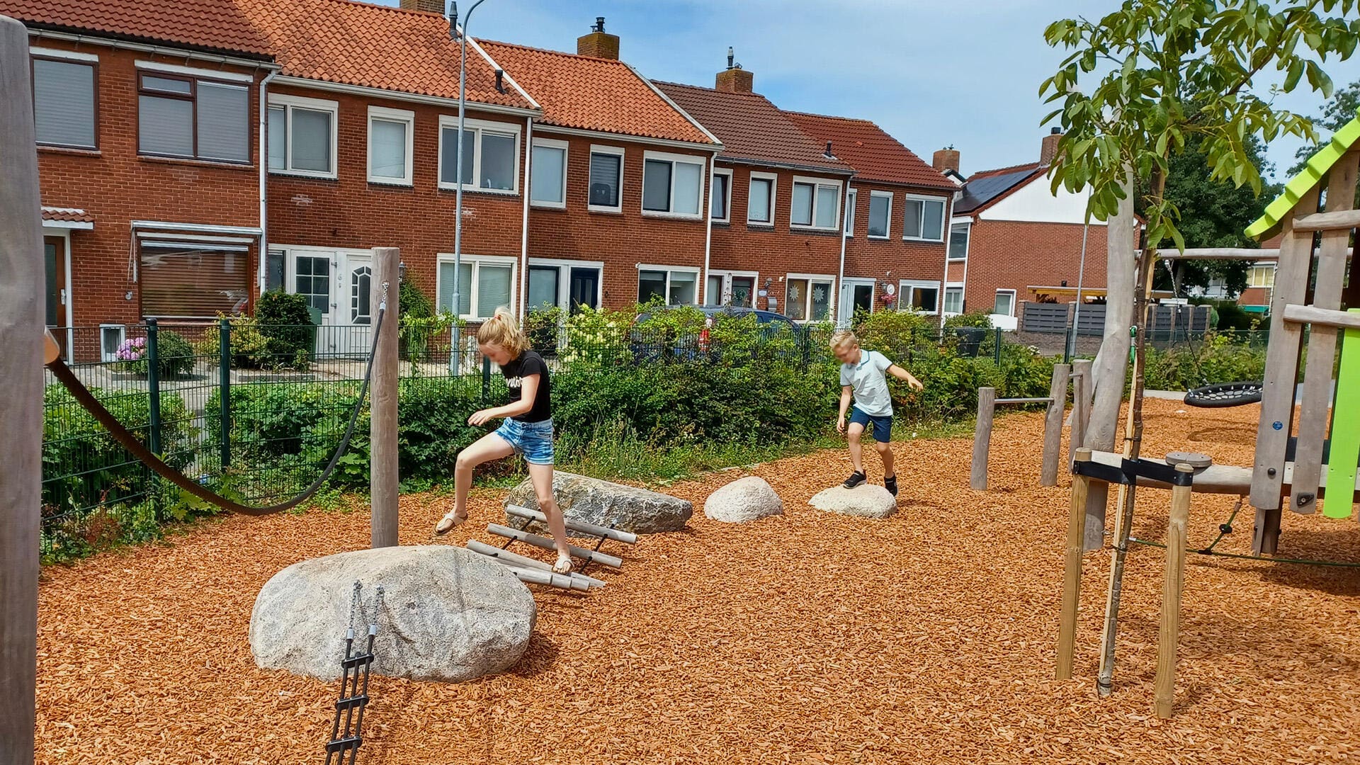 Een ander belangrijk onderdeel van het plein zijn diverse speeltoestellen die de verbeelding van kinderen stimuleren. Ze zetten aan tot het spelen van rollenspel en daarnaast het verzinnen van eigen verhalen en avonturen. Hiervoor zijn onderdelen van ons inrichtingsconcept voor fantasierijk spelen gehanteerd. Denk hierbij aan een buitenkeuken voor het bakken van taartjes, maar ook een speelschip voor avonturen op zee en een verkeersplein.
