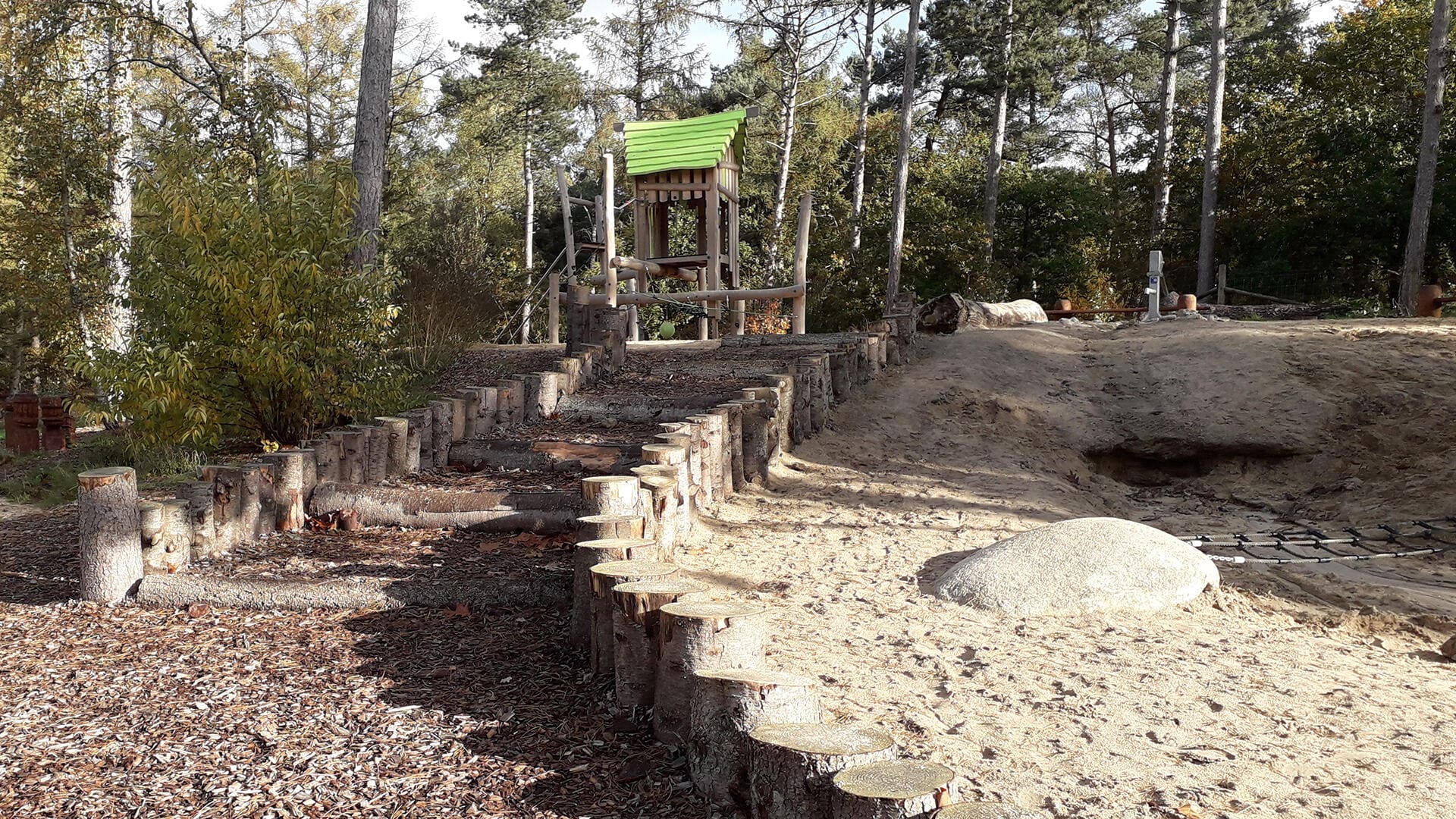 De zandheuvel naast de eerder aangelegde kabelbaan verderop op het park, leende zich uitermate goed voor een spannende klim- en ontdekroute. Hier is een oploopje gemaakt van houten elementen. Vervolgens is bovenop de speelheuvel een uitdagende klimroute geplaatst. Hier is gekozen voor een klim- en ontdekroute uit het Adventure Play Explore assortiment. Ook is er een waterpomp aangelegd. Met een waterloop die naar beneden voert.