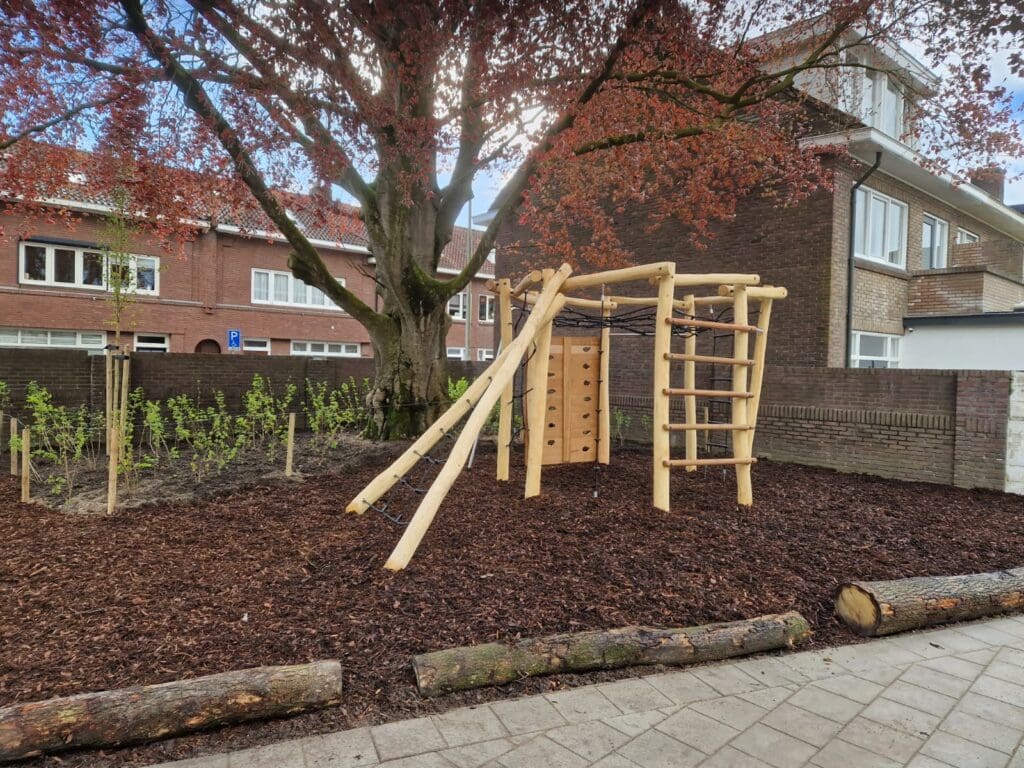 Door te kiezen voor valondergronden van boomschors, versterken we de natuurlijke uitstraling van het schoolplein. Bovendien bevordert dit ook de afvoer van regenwater, waarmee we de vorming van plassen regenwater en modderige plekken kunnen voorkomen. Aanvullend kan een dikke laag boomschors de groei van onkruid onderdrukken, waardoor er minder onderhoud nodig is op het schoolplein.