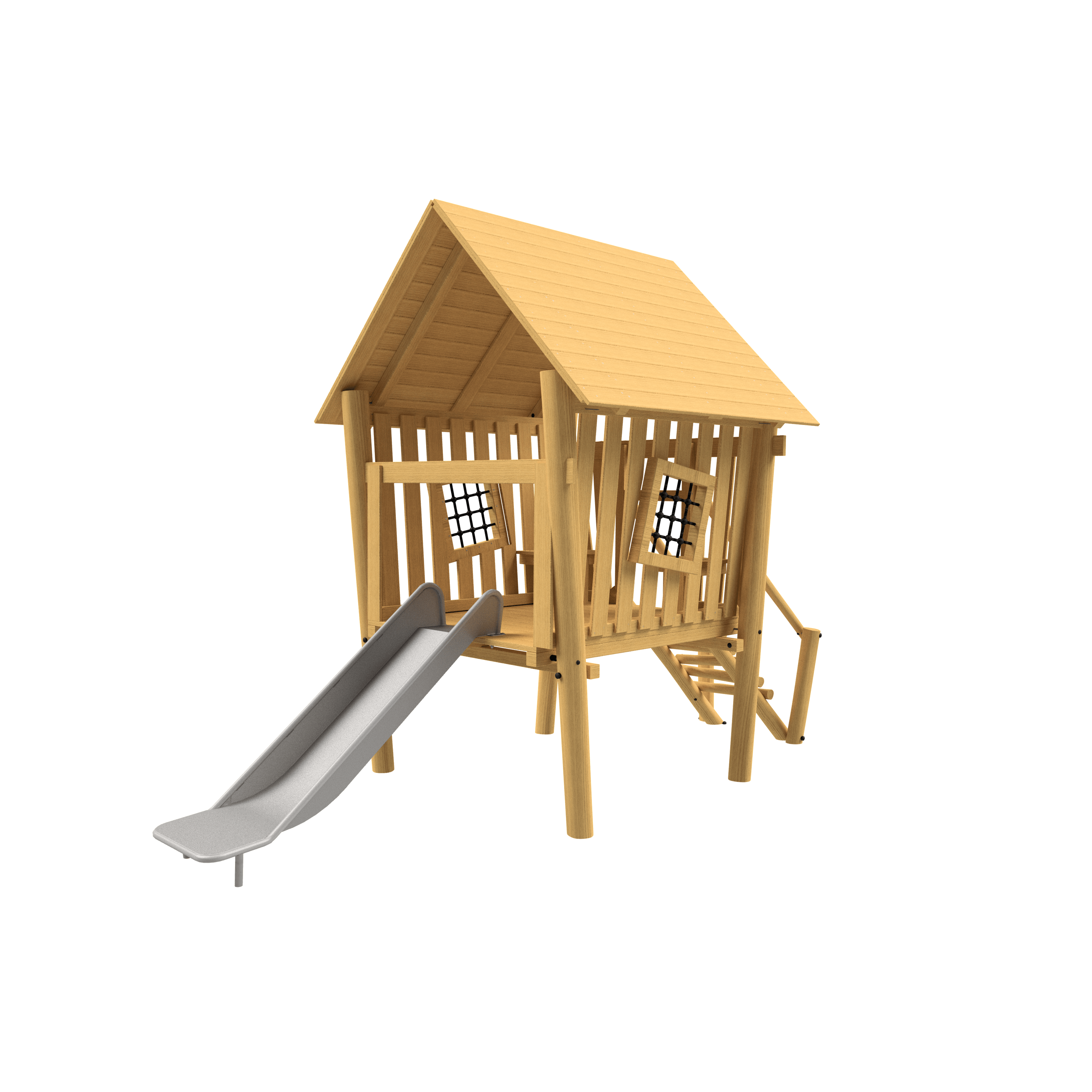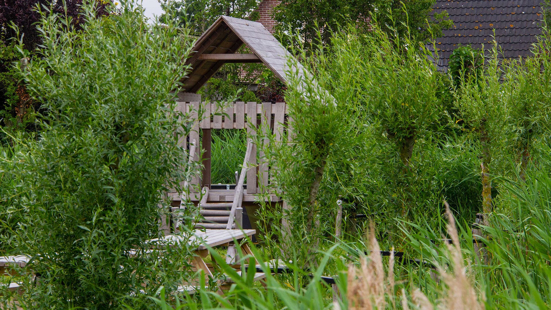 Beleving staat centraal op dit avontuurlijke speeleiland. Niet zo maar een speelplekje dus, maar een plek waar je spannende avonturen beleeft op en rondom het water. En dat allemaal vlakbij je eigen huis. Hoe tof is het dat je vanuit deze nieuwbouwwijk zo de natuur en het avontuur in stapt! Voor dit ontwerp is een inrichting gekozen voor natuurlijk spelen. Kinderen van 4 tot ongeveer 12 jaar kunnen hier lekker ravotten en survivallen. Zoals over bruggetjes, stapstenen en boomstammen. Maar je kunt er ook roetsjen van de glijbaan en schommelen op de vogelnestschommel. Balanceren, klimmen, klauteren en spelen met zand en water, het kan hier allemaal. Wil je even uitrusten of je even terugtrekken, dat kan ook in het boerderijspeelhuisje of op een boomstam.