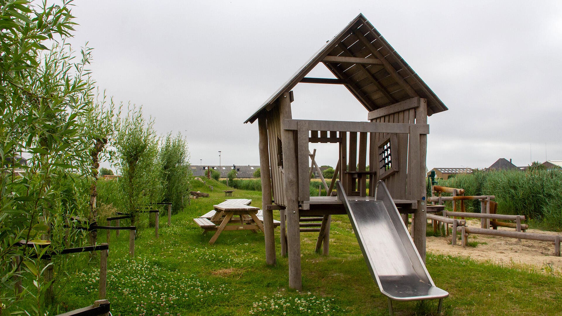 De wens was om een spannend speeleiland te maken. Met natuurlijke en avontuurlijke speeltoestellen en zand- en waterspel voor de wat kleinere kinderen.