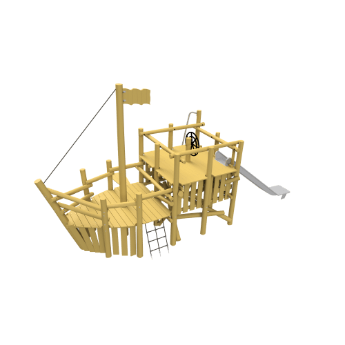 De kinderen uit de Oosterweidestraat in Schermerhorn zijn erg blij met hun nieuwe speelplek. De gemeente wilde een ontmoetingsplek waar jong en oud elkaar konden ontmoeten. Kinderen kunnen zich helemaal uitleven op het grote speelschip van FSC-gecertificeerde Robiniahout dat drijft in het blauwe “water” van kunstgras, zwieren en zwaaien op de duoschommel met vogelnestschommel of lekker duikelen.
