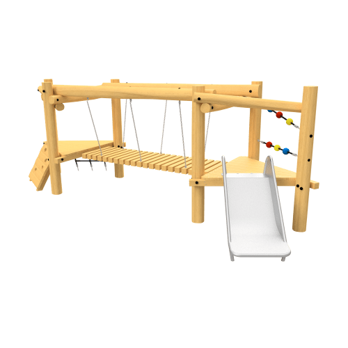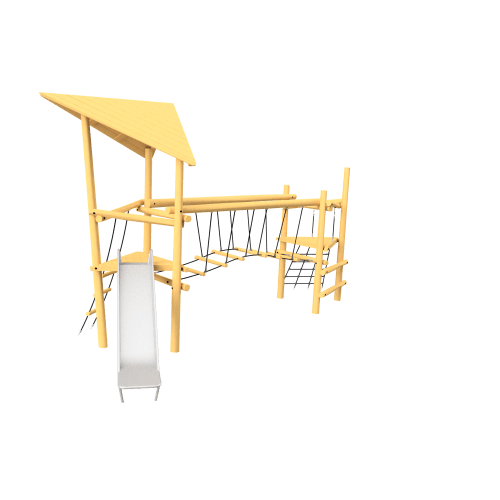 In de zandbak staan 4 spiderstones met een netbrug, wiebelbrug en wiebelbalk. In de kleuterzone is een schommel en een hangbrug geplaatst met enkele kleinere keien tussen deze toestellen en de zandbak. Voor de ouderen werden volgende toestellen geplaatst, een duikeltrio, een voetbaldoel en palenwoud uit het Adventure Play assortiment en een draaischijf uit het Pionier assortiment.