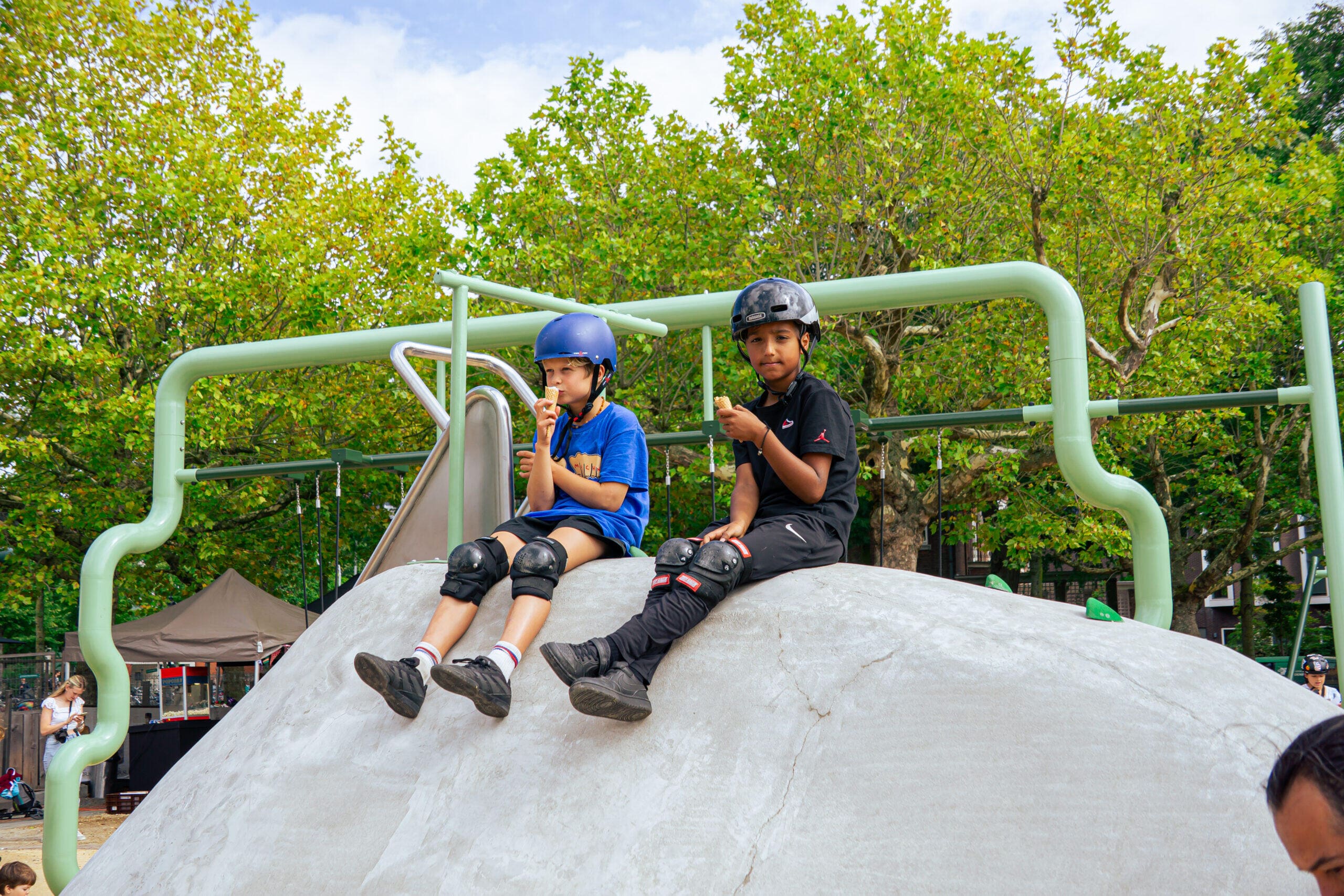 Sinds de opening wordt de nieuwe speelplek dagelijks intensief gebruikt. Kinderen ontdekken hun grenzen, mensen ontmoeten elkaar en het plein voelt rijker en levendiger, zonder dat het aan rust of uitstraling heeft ingeleverd.
