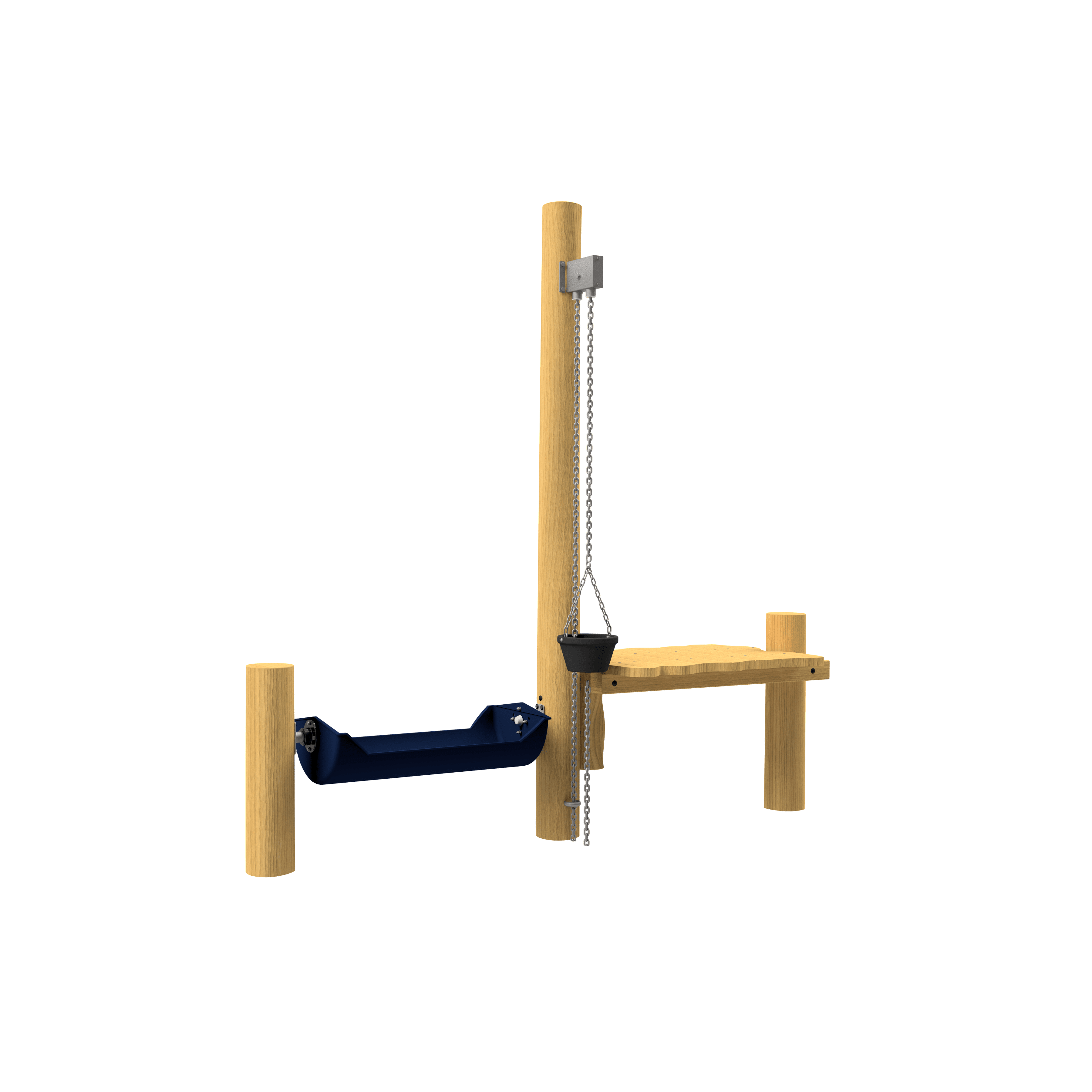 Tussen het terras en de waterloop hebben we een speciale speelzone gecreëerd voor de jongste bezoekers. Met een zandtafel, een graafmachine en een zitje kunnen zij zich prima vermaken, terwijl ouders hen goed in de gaten kunnen houden vanaf het nabijgelegen terras. Aan de andere kant van het water is het grote speeltoestel “De Droomhut” geplaatst, samen met een fantastische kabelbaan. Hier worden de oudere kinderen uitgedaagd om op ontdekkingstocht te gaan.