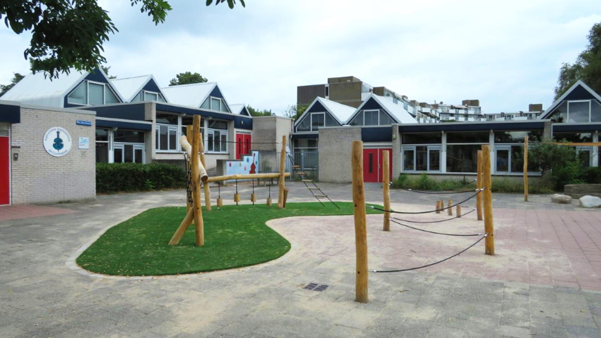De inrichting van het vernieuwde schoolplein is vooral gericht op het stimuleren van kinderen en hun leerkrachten om lekker veel naar buiten te gaan. Er is vanalles te beleven. Er is vooral gekozen voor natuurlijke materialen voor de speeltoestellen, maar ook bijpassende valondergronden in natuurtinten. En, met de aanleg van buitenklassen en bewegend leren is het nu ook mogelijk om het lesaanbod van binnen, buiten aan te bieden. Heerlijk in de buitenlucht. Voor de buitenklassen zijn oude tegels van het plein hergebruikt en vermaakt tot halfronde tribunes. Een slimme en vooral duurzame oplossing voor het gebruik van nog bruikbare onderdelen van het oude plein.
