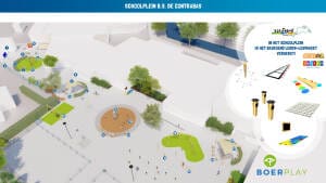 Bij het ontwerp van dit schoolplein is vooral gekeken naar de mogelijkheden van het plein en de wensen van de school.