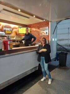 Isabella’s jubileum werd goed gevierd. Haar lievelingseten? Frietjes! Dus kwam er voor het hele bedrijf een frietkraam op het terrein. Ook haar man, kinderen en kleinkinderen waren erbij. Haar kleinkinderen zie je trouwens vaker bij BOERplay, want ze figureren regelmatig als model in onze brochures. Isabella is dan ook een trotse oma als ze haar kleintjes op de foto’s terugziet.