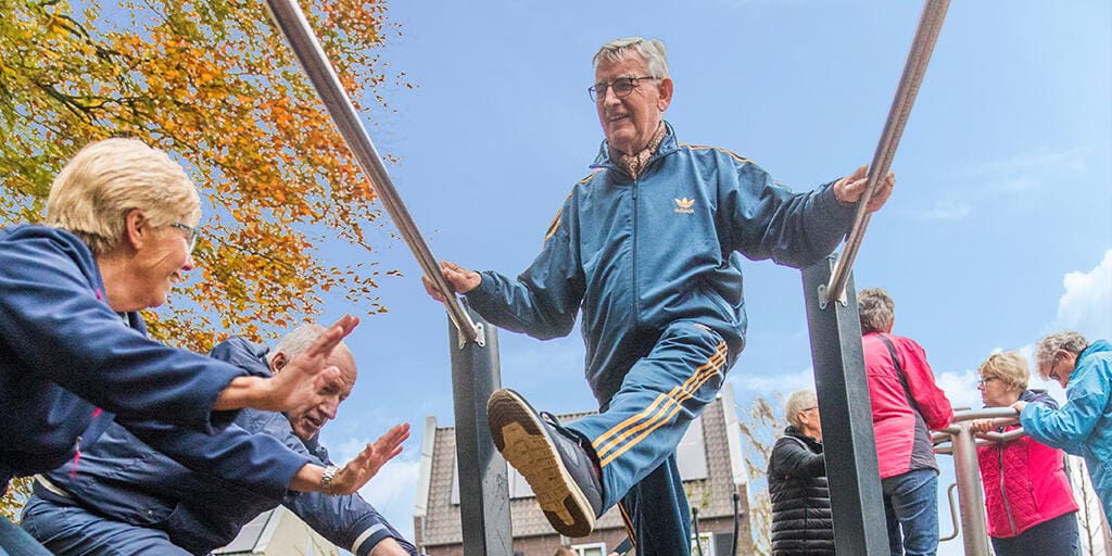 Sporten, elkaar ontmoeten & bewegen is belangrijk om problemen zoals minder beweging en minder sociaal contact, te verminderen en op die manier bij te dragen aan een veerkrachtige samenleving. Door de buitenruimte zo in te richten, dat iedereen kan (blijven) meedoen aan sport, bewegen en elkaar kan blijven ontmoeten, houden we elkaar fysiek en mentaal fit. Wij benadrukken het belang en de mogelijkheden voor de inrichting van beleef- en beweegtuinen voor in de zorg. Met vier inrichtingsconcepten voor de buitenruimte bij zorginstellingen, die zijn afgestemd op verschillende zorgbehoeften: